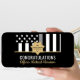 This design features a corrections officer flag with black and white stripes, and a thin silver line stripe as well. This design is great for showing appreciation to an officer celebrating the graduation of a corrections officer. Customize with the state they served in as well!