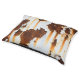 Vivid colors, and soft, plush fabric! I was extremely happy with this purchase. The print I chose worked on the large dog bed beautifully, and is a perfect match for our home tiki bar. Our dogs look so stylish lounging in here with us, and they love the soft fabric. My only minor critique would be that the stuffing inside is a little on the thin side, and becomes flat very easily. It's an extremely easy fix to add more stuffing, or do what we did and add a stuffed rectangle crate liner inside the cover underneath the existing stuffing - works perfectly! The printing turned out better than I could've imagined. I was extremely impressed with how well the colors turned out and how the design looked.
