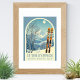 Poster from a wonderful ski resort holiday in the beautiful mountains of Cortina d’Ampezzo, Italy! This small poster features an arch with a stunning blue-grey mountain landscape and retro ski boards in an orange tribal pattern in the foreground. The rest is in a lovely light blue tone with the location lettering in a modern font. The design is a lovely combination of retro and modern, and I hope you enjoy it!