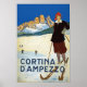 Vintage Italian travel poster for Cortina D'Amprezzo, a ski resort town in the Italian Alps.