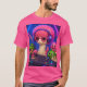My 11 yo wore adult XL (5’7” 165#). The 8yo is small framed. She wore adult small and tied it in the back. Dark haired male wearing adult large and female wearing adult medium. Good quality dark Heather gray, Gildan brand shirt. -it was next up from basic choice and cost about $20 per shirt. Not too thick or thin. Washed and dried well, no major shrinkage. Not see-through. Can wear a bra under it fine. Screen print is just as shown and well done, front and back. They printed random cupcake image I downloaded from internet with no problems! Looked perfect! Front design was stock from zazzel.