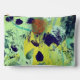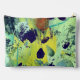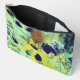 Abstract art lights up this bag in colors of light green, yellow, and dark blue.