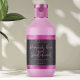 A label for cosmetics and/or soap products with a black background and a faux hot pink foil border. This label contains space for your product name, business name, product weight, ingredients, instructions, social media, and business address. This label measures 3.75 inches by 2 inches (95 mm by 51 mm) and is suitable for bottles with a diameter of 1.2 inches (31 mm) or more such as 4 oz (120 ml) bullet, cylinder, and boston round bottles. It can also be used for cosmetic jars and other types of cosmetics packaging.