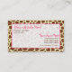 A cosmetologist / salon business card featuring a giraffe print background. Personalize the front with your business contact information. Use the back to write appointment information.