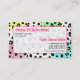 A cosmetologist / salon business card featuring a neon leopard print background. Personalize the front with your business contact information. Use the back to write appointment information.