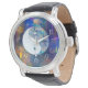 A cool looking watch featuring the signs of the zodiac, a yin yang and a cosmic aura space galaxy background.