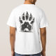 Two-sided tee with a rugged, celestial vibe. Front: small left-chest bear-paw emblem. Back: large distressed paw filled with a starry night sky. Perfect for hikers, campers, and wildlife lovers who chase trails and constellations. Customize tee style, color, and artwork size on Zazzle.