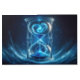 A mesmerizing blue hourglass floats in mid-air, containing a swirling blue nebula instead of sand. As the nebula spins, luminous streams of stardust defy gravity, cascading upwards. The hourglass, crafted from crystal-clear blue glass with intricate, glowing patterns, radiates cosmic beauty as it shifts with the nebula’s motion. Set against a velvety blue space, faint fractal patterns appear and vanish, enhancing the otherworldly atmosphere. This surreal and captivating design evokes a sense of suspended time and cosmic wonder, perfect for lovers of celestial and dreamlike art.