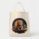 The printing came out very well, better than I had anticipated. The natural color fabric is sturdy with strong seams and comfortable handles. This tote fits easily over my shoulder. As it is filled, the bottom flattens out--very cool! I would buy this product again. This grocery tote holds a lot of groceries! The image quality was very good. The colors were a little darker than I had expected. The darkness may have been due to printing on a natural color fabric rather than on white. The cat design is attractively centered on the tote. The spirit of the design is very lively, just as it appears on the Zazzle website.