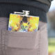 Well made flask, a little better than I had expected. Flask came in clear plastic box which gave it a nice presentation when I took it out of the zazzle packaging. Image is not printed on flask but on sticker. Don't know how this will hold up I haven't used it yet. This would make a Great gift! I plan to purchase more for friends! Cheers. I thought a little brighter than computer. Very crisp, writing wasn't