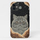 Peeking through an asteroid window, a grumpy yet lovable cosmic cat gazes into the vastness of space. This fun, retro-style illustration combines a love for felines with the adventure of space travel, perfect for any cat lover with their head in the stars.