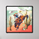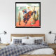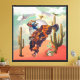 Modern Collage Wall Art. This one is a bucking bronco horse and cosmic cowboy with cactus and moon in the cloud sky background. Loads of color in the wild west. Fun, mod and eclectic ephemera. This is a flat surface with a smooth canvas finish. Fun, surreal art using a mix of collage and digital art techniques, with a vintage, mid-century retro feel.