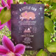Cosmic woodland baby shower theme featuring an illustration of a baby bear lounging on a birch tree branch surrounded by stars. Bear has pink lightning bolt on face and stars around ears. Personalize the text. Background is watercolor cosmic inspired design. Stars, moon and large text are foil.
