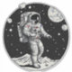 This circular astronaut sticker blends retro-futurism with modern minimalism. High-contrast grayscale artwork is enhanced with subtle red and blue details, creating depth and motion on the lunar surface. Designed for astronomy fans, sci-fi thinkers, creatives, and anyone who loves clean, meaningful space art.
