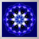 A beautiful original cosmic star flower design created for the Awakening or 2012 Ascension movement. The center represents Christ Consciousness with the star cross symbol and Gaia's Earth Grid. Bright chakra blue colors with white and black.