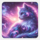 Cosmic Galaxy Mystical Feline Celestial Square Sticker