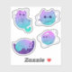 Drift away into the cosmos with this "Cosmic Kitties" sticker pack! Each sticker showcases adorable cats adorned with celestial and cosmic patterns, twinkling stars, and soothing galactic colors. These enchanting designs merge the cuteness of kittens with the mysterious allure of the night sky, perfect for decorating laptops, sketchbooks, or even giving a little astral charm to your everyday belongings. Whether you're a cat lover, a space enthusiast, or someone who adores unique, artistic stickers, these cosmic kitties are sure to brighten your collection and add a touch of magic to your items.