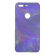 This Google Pixel phone case has an abstract cosmic looking design of transparent mists of colors in bright pink and mint green swirled together on a vibrant dark blue background.