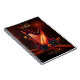 Cosmic melody, the magic of the harp. The harp radiates warmth and luxury, its golden strings and frame contrasting harmoniously with the black and orange flowers that adorn it. These flowers are vibrant and richly detailed, lending the instrument a natural beauty and a touch of magic. The background transports the viewer to a mesmerizing spacescape. It consists of deep blue and purple nebula clouds, interspersed with twinkling stars and shimmering planets of various sizes and colors.