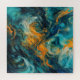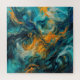 Cosmic Ocean Square – Colourful Abstract. Flowing, untamed, and endlessly shifting, this piece resembles an ocean’s depths mingling with cosmic light. Like a galactic volcanic storm unfolding in real-time, this artwork captures a clash of bright orange and blue colours in cosmic currents. The piece radiates fluid motion and elemental energy, blurring the lines between ocean, sky, and space in a symphony of turquoise and flame where the eye is lost in imaginary visions of swirling currents, molten lava, surreal shapes of faces and eyes all lost in a complex spectacle.
