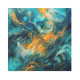 Cosmic Ocean Square – Colourful Abstract. Flowing, untamed, and endlessly shifting, this piece resembles an ocean’s depths mingling with cosmic light. Like a galactic volcanic storm unfolding in real-time, this artwork captures a clash of bright orange and blue colours in cosmic currents. The piece radiates fluid motion and elemental energy, blurring the lines between ocean, sky, and space in a symphony of turquoise and flame where the eye is lost in imaginary visions of swirling currents, molten lava, surreal shapes of faces and eyes all lost in a complex spectacle.