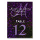 This cosmic purple wedding table number card looks both elegant and sophisticated. The background has just a touch of a glitter looks and looks like stars, helping to make this card even more special. Customize with your bride and groom names to make a special card that can also be used as a keepsake. When you order this card, make sure that you "make" each number individually then add them to your cart. Any discounts such as the bulk discount will then be applied. Card designed by Amelia Carrie. Have a wonderful day! (Note: This card contains no messy glitter and is a graphic reproduction print.) See more designs at GlitterInvitations.com or Zazzle.com/GlitterInvitations