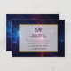 Wedding RSVP card with a blue, pink and black fantasy image of cosmic space with stars and wispy nebula. A transparent frame layered over top with a gold border.