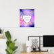 An elegant poster which says "Welcome to our Wedding" with a nice combination of pastels and bright colors. A colorful abstract painting with a cosmic space image in pink, purple and yellow watercolors. The colors blend and mix together creating luminous ethereal forms with little twinkling stars peppered throughout. Personalize with your names and wedding date inside a fancy heart shape.