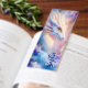 Soar through a dreamlike sky with this breathtaking personalized fantasy bookmark. A celestial dragon with iridescent white scales spirals gracefully, shimmering with gold flecks and revealing hints of blues, lavenders, and frosty silvers. Its wise, golden eyes peer from a detailed, horned head framed by flowing, luminescent mane-like tendrils. The dragon undulates through a cloudscape of cotton candy pinks, periwinkle blues, and radiant golds, alive with swirling cosmic dust and sparkling particles. Evoking celestial wonder and a sense of weightlessness, this personalized accessory makes every page a journey into an ethereal realm.