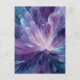 This postcard features a swirling violet and indigo bloom with pearlescent whites, fluid petals radiating from a luminous center - an abstract cosmic flower symbolizing creation.