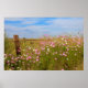 Beautiful pink and white Cosmos flowers growing wild in the field on a farm. The fence makes a beautiful background to "perfection" the view.