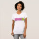 The material is a great quality that is hard to find with most tee shirts. Fabric was not see-through or thin at all, but was also very soft and comfortable. The shirt description states that it runs a little small, so I sized up one size for a perfect fit! I would definitely buy this type of tee shirt again because I love the fit and high quality fabric that I cannot find anywhere else. The printing was perfect and just as pictured. Loved the cute quote and really enjoy the tee in both the quality and design. I love quirky typography designs and funny quotes and I am extremely pleased with the overall quality and value I get at Zazzle!