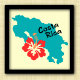 Costa Rica map outline with hibiscus flower in tropical colors. Change the background color if you like (Customize/Edit menu/background)
