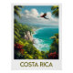 Illustrated poster of Costa Rica featuring a lush wild coastline, a tropical forest and a colorful macaw in flight. Perfect wall art for lovers of exotic nature and tropical landscapes.