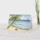 Orange crab and sail boat costal scenery palm tree, Thinking of You greeting card. Original design by Ines Miller