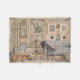 This image features an artwork by Swedish painter Carl Larsson (1853–1919), who was a member of the Arts and Crafts movement. The image shows an elegant domestic scene in a stylish living room; a dog is sleeping calmly on the rug, beside a blue-and-white striped sofa. The original painting was completed in 1894.