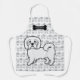 Destei's original cartoon illustration of a cute white color Coton de Tulear breed dog. The dog design is placed as a pattern on the background of the apron as well as a larger size on the bottom. The top has a black dog bone silhouette together with a personalizable text area for a name.