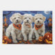 Unleash the spooky spirit with this eerie Halloween design featuring a pack of dogs under a dark, moonlit sky, surrounded by flying bats and glowing pumpkins. Perfect for those who love a touch of frightful fun with their furry friends!