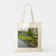 A beautiful view a stream in the village of Bibury in the Cotswolds in England printed on a souvenir tote bag.