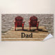 Summer cottage on the lake Father's Day summer beach towels for dad. Brown burgundy beach chairs on a dock brown, beige. Modern, unique, cool, trendy, chic, rustic cabin style item. Personalised design. Phrase 'Dad' Customize your text by font size, style, color or remove if desired. Look for matching products in my store collection. Image copywrite Marg Seregelyi Photography.