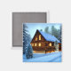 Beautiful artsy abstract pioneer log cabin set in winter woods.