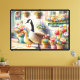 A tender cottagecore scene unfolds on a sunlit porch where graceful geese wander among blooming tulips, overflowing window boxes, and painted flowerpots. Soft pastels mingle with gentle greens and warm creams, creating a peaceful, storybook atmosphere rooted in folk charm and shabby chic warmth. The composition feels welcoming and nostalgic, blending whimsical countryside life with floral abundance and quiet spring joy. AI generated artwork.