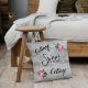 This Cottage Throw Pillow features the text Cottage Sweet Cottage on a faux whitewashed wood background with pretty pink roses. Perfect for your Cottage or Vintage Decor.