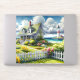 A dreamy coastal cottagecore landscape filled with soft watercolor charm and breezy seaside tranquility. A welcoming seaside cottage sits among lush garden paths, blooming flowers, and a bright white picket fence, creating a warm storybook atmosphere. In the distance, a tall lighthouse rises beside sparkling blue ocean waves, adding a classic nautical touch to this peaceful coastal setting. Fluffy clouds drift across a vibrant sky while sunlight washes over pastel florals, green lawns, and cheerful garden beds. The gentle brushstroke style gives the scene a whimsical, painterly feel reminiscent of cozy coastal living, cottage gardens, and relaxed seaside afternoons. Fresh spring colors, airy ocean blues, and soft floral pinks blend beautifully to create an enchanting cottagecore aesthetic that feels calm, nostalgic, and full of coastal charm. AI generated artwork.