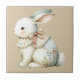 A sweet white bunny sits gracefully in soft pastel tones, dressed in a vintage-style patchwork apron and scalloped collar that echo gentle cottagecore charm. Delicate florals, gingham touches, and warm blush accents create a dreamy, nostalgic mood perfect for cozy nursery atmospheres and storybook-style scenes. The artwork blends whimsical folk details and soft watercolor shading for a tender, heartwarming aesthetic full of calm, handmade warmth. AI generated artwork.