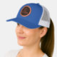 Custom Leather Patch Hat, Sytle: Adult Retro Trucker Cap, Color: Heather / Black, Shape: Circle