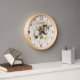 Here's a beautiful wall clock to add some beauty to your home or office. It's round (with various wood finishes available to choose from) and features a lovely cotton boll branch with red berries, eucalyptus.