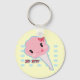 Cute keychain with fluffy cotton candy face Cotton Candy written in Japanese Katakana. ^_^.