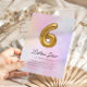 Cotton Candy Watercolor Girls 6th Birthday Balloon Invitation