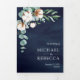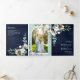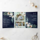 Cotton Eucalyptus Photo Collage Navy Blue Wedding Tri-Fold Invitation